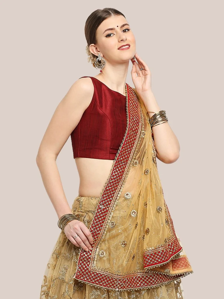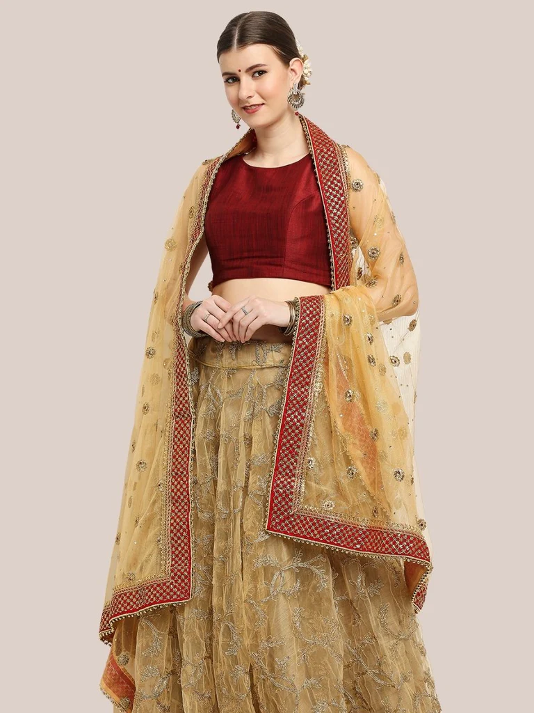Swathe in the beauty of this stunning bridal dupatta in mesmerizing net fabric. So add this classic dupatta with zardosi handwork work to enhance your lehenga, kurti, anarkali or saree . Rich & regal, this heavily embroidered net dupatta from the house of Dupatta Bazaar would be a stunning and versatile addition to your wedding wear. Wrap around this astounding piece and grace your favourite occasion, festivals and weddings.