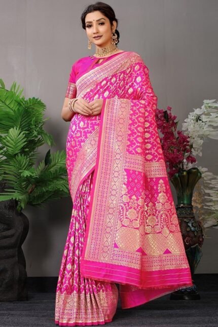 Soft Silk Dark Pink Color Zari Work Saree Festive Wear