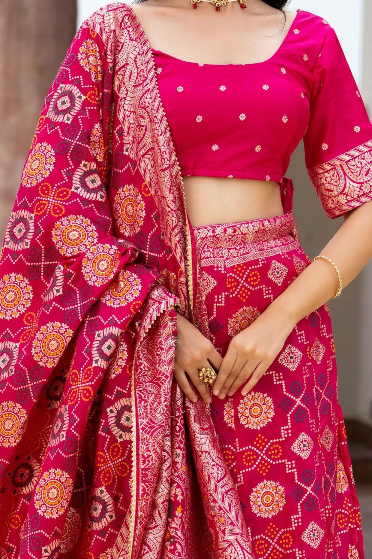 Rani Pink Silk Blend Lehenga Set