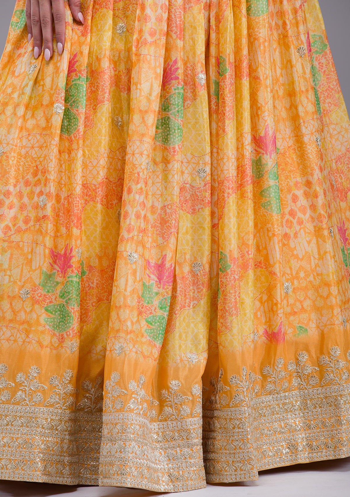 Step into the spotlight with radiant orange georgette lehenga, where every twirl glistens with the lively sparkle of sequin embroidery. Designed to celebrate you, this ready-to-wear ensemble winks at tradition with a bold, contemporary flair. It’s your time to dazzle, embodying effervescent elegance effortlessly at any festive gathering!.